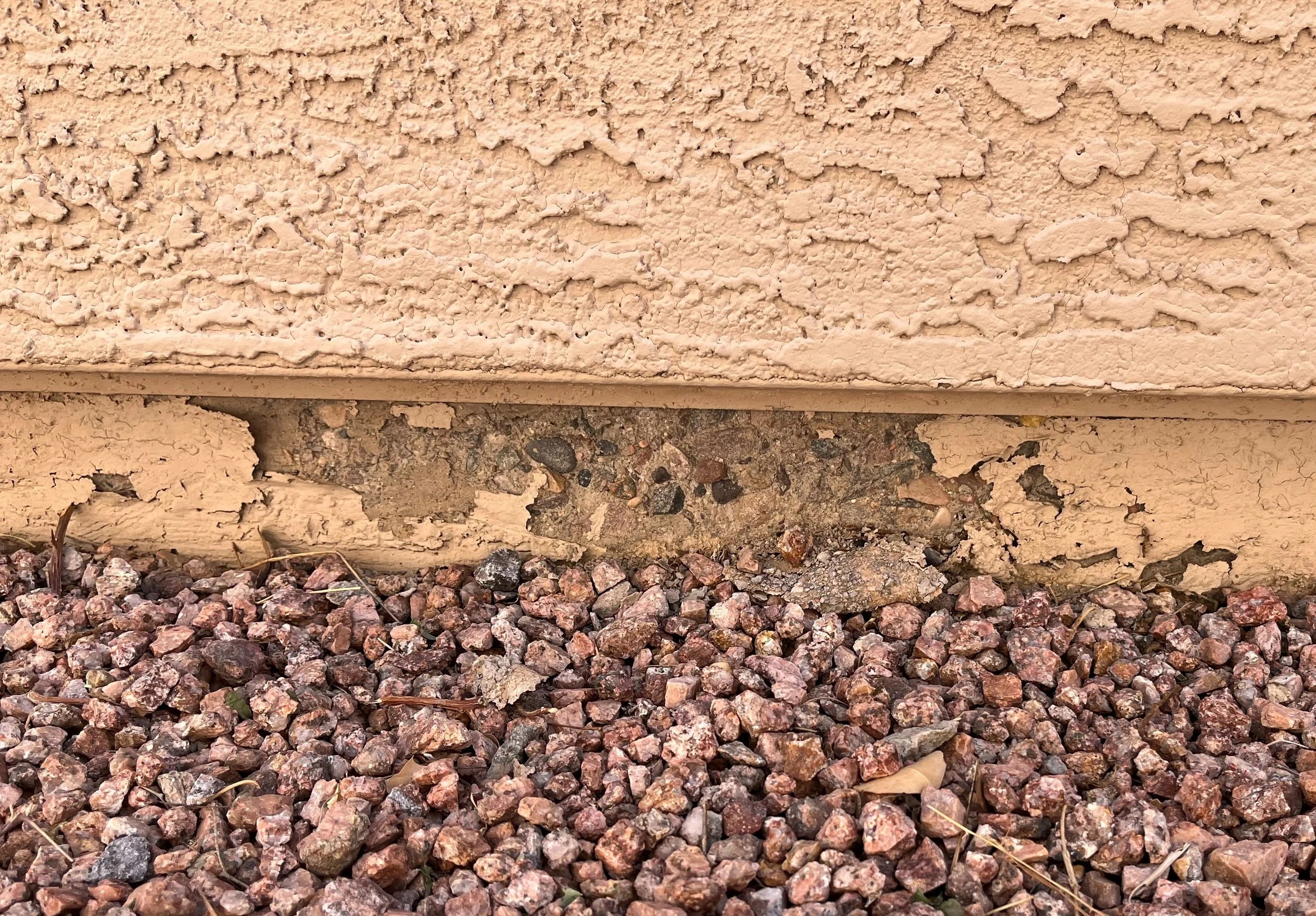 Peeling paint, bad drainage, eroding concrete surfaces, dripping hose bibs and irrigation systems are all factors that can damage your foundation system. Whether it is a post-tension concrete slab on grade or a conventional stem wall / footing system, there are vulnerable steel components within the concrete you are seeing.